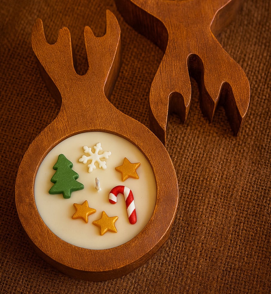 غزالة كريسماس خشب طبيعي