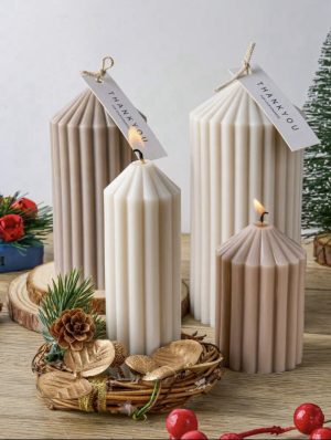 طقم شمع اسطواني مضلع 4 مقاسات